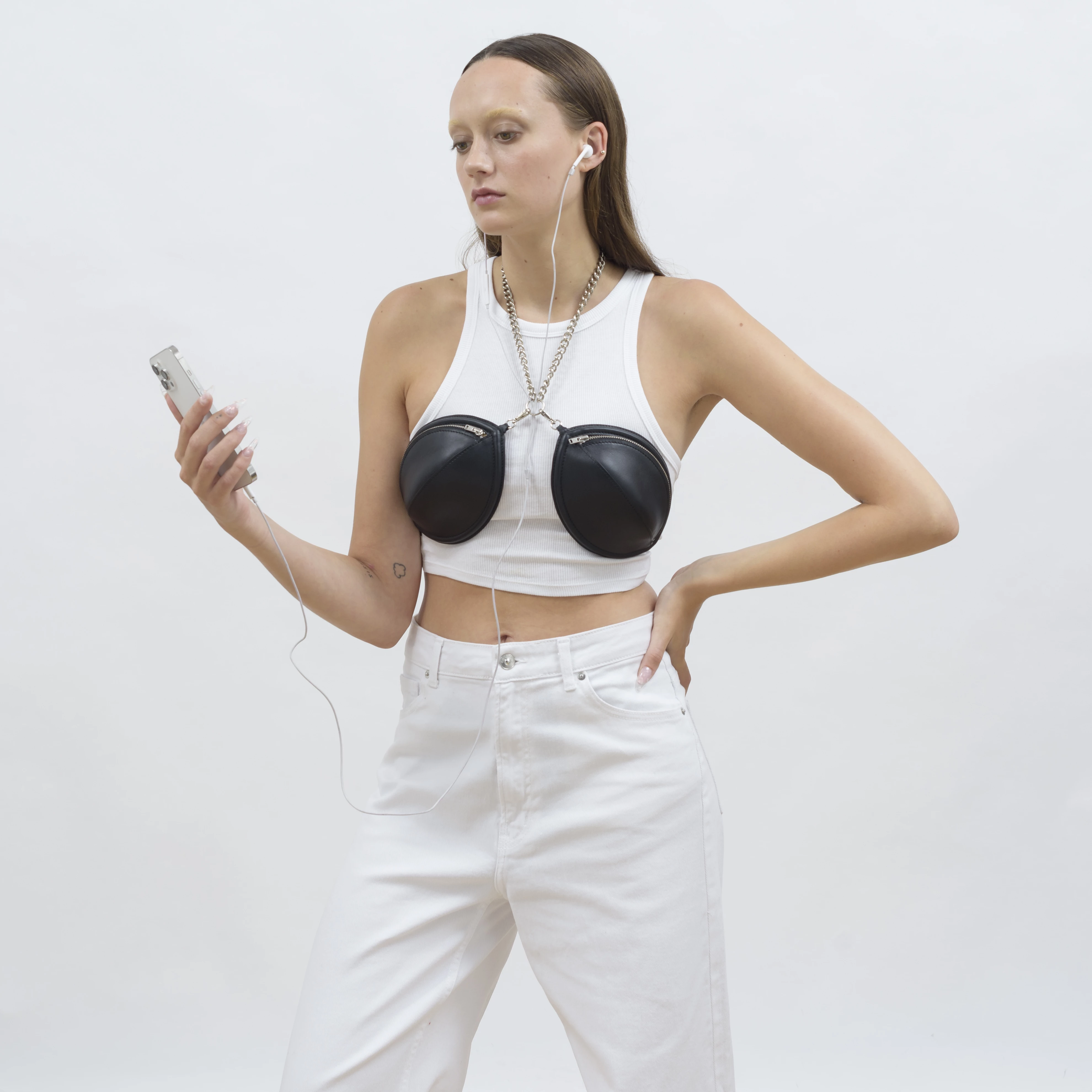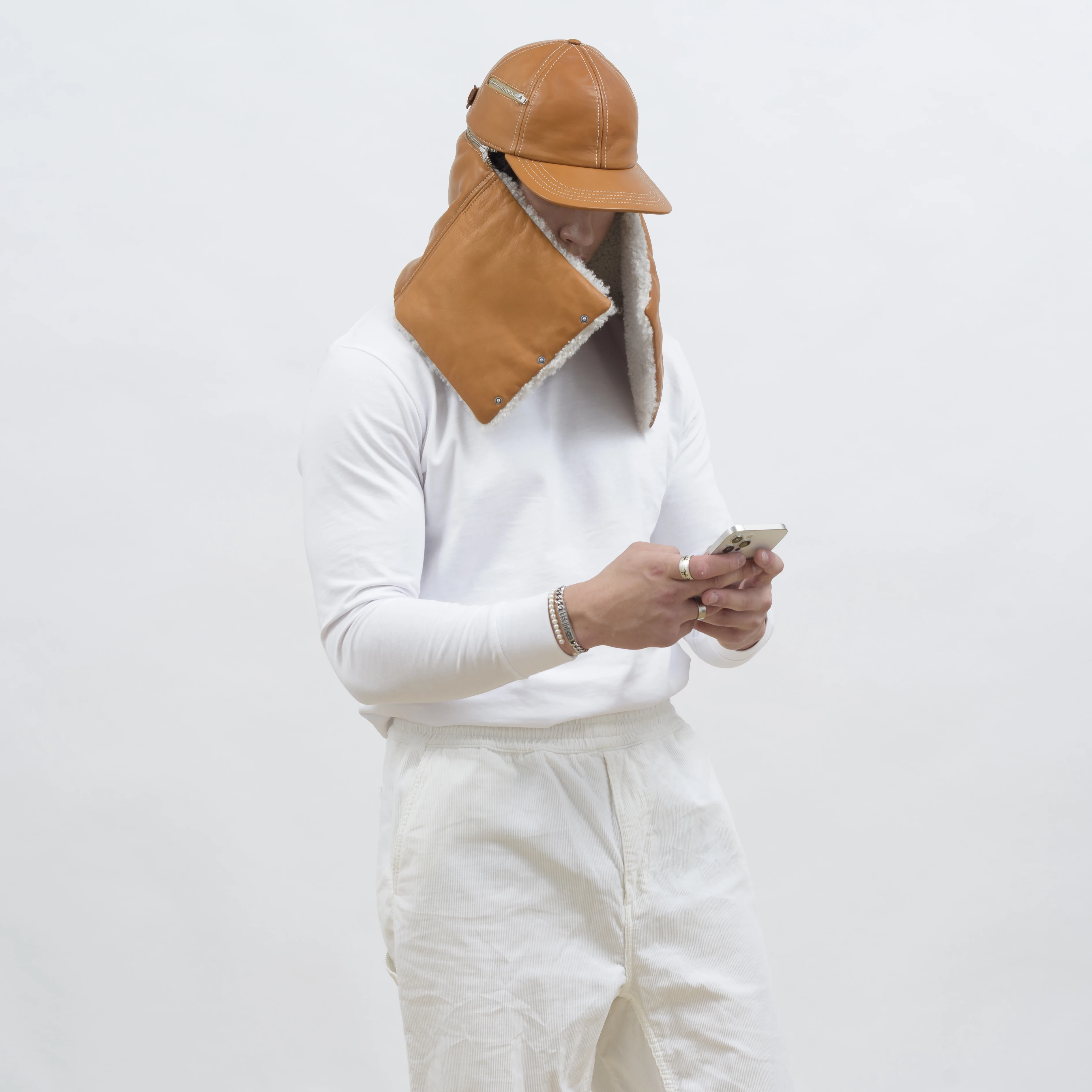 SARAHLEVY approaches accessories as a field of experimentation. Each piece is rooted in an everyday object—often one that has become fetishized—or in the gestures that surround it. Her designs propose material responses to contemporary habits, balancing practicality with a deliberate sense of the offbeat. Blending strangeness, humour, and comfort, creations such as the Tits Bag, Sleeve Bag, Finger Mittens, Pocket Cap, Curtain Cap, and Curtain Hat are conceived to be genuinely useful while injecting playfulness into daily life. Function is always the starting point, fun its natural extension. Sustainability underpins every stage of SARAHLEVY’s production process. Local manufacturing, respectful collaboration with artisans, and the upcycling of deadstock materials are central commitments. This approach is supported by Maison Delvaux, which provides leather sourced from the finest French tanneries.
