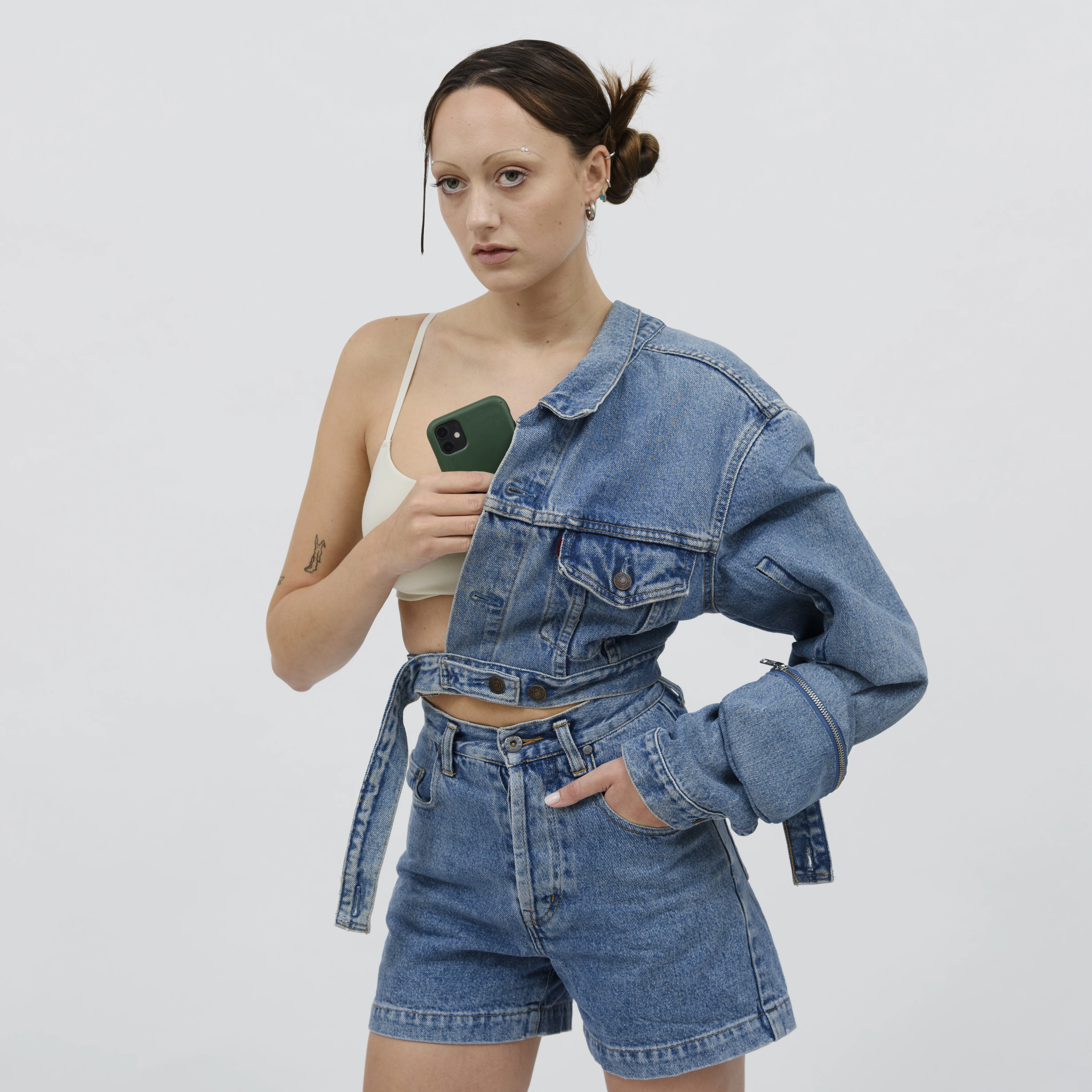 The Index series proposes a new category of accessory, rooted in a reflection on the evolution of the handbag — increasingly replaced by our pockets and garments in everyday use. Each Index piece transposes the codes of garments embedded in our collective imagination — Bomber jackets, denim jackets, Perfectos, Barbour jackets, duffle coats, hoodies, work pants — into the form of an accessory. “Index” refers to a working method based on synthesis and translation. The approach consists of identifying the elements through which a garment is immediately recognisable, and recomposing them as an accessory. What singularises each garment becomes the principle of composition for the accessory it generates. The Index pieces are primarily produced using materials sourced from the circular economy.