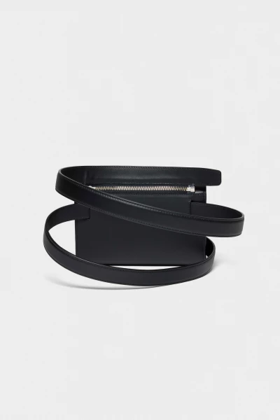 Leather pouch zipped to a belt that slides through a back coulisse, allowing it to be worn crossbody or adjusted around the waist. Designed for versatile styling and practical use, with a clean, minimal silhouette. Crafted from smooth, high-quality leather.