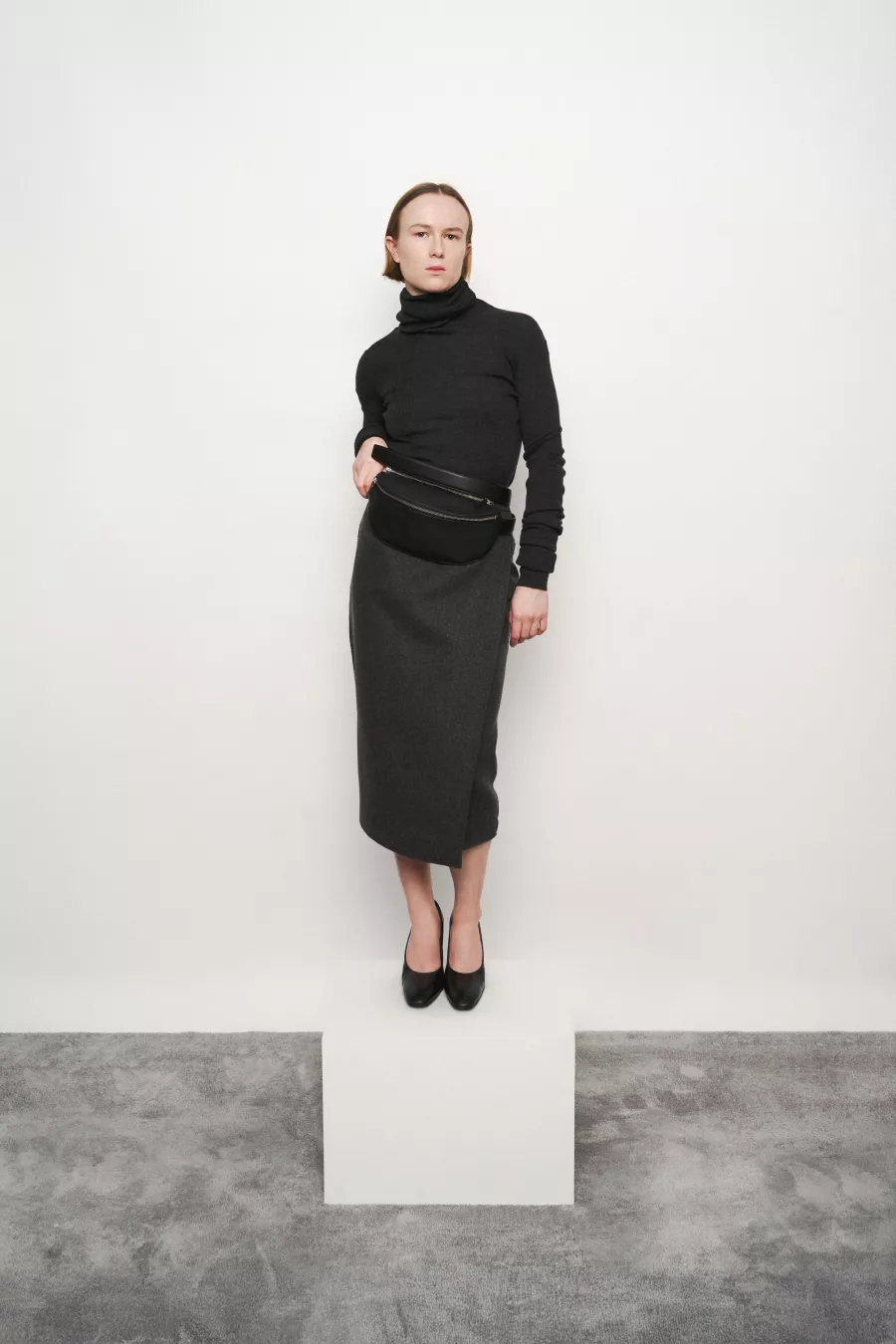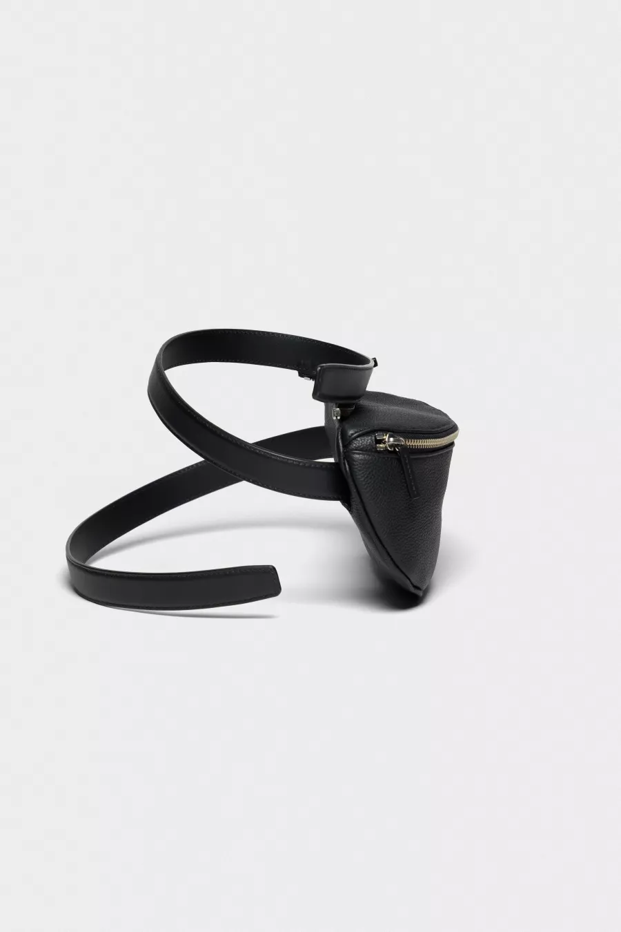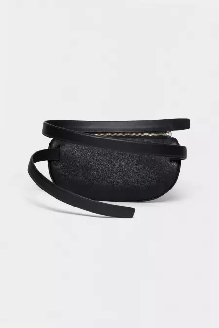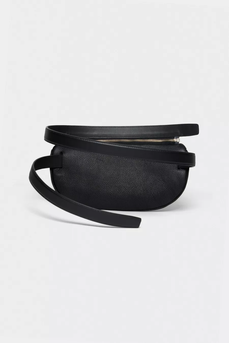 Leather pouch with a soft, large, zipped pocket attached to a belt that slides through a back coulisse. Can be worn crossbody or around the waist. Designed for practical use and versatile styling. Crafted from smooth, high-quality leather.