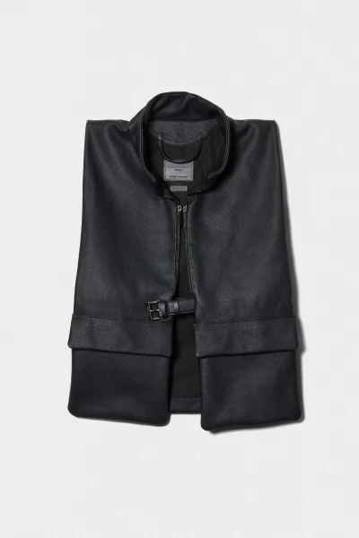 Shoulder vest with two large flap pockets and two spacious zipped pockets. Designed for practical everyday use, balancing functionality and minimalist design. Crafted from smooth leather with a clean silhouette.