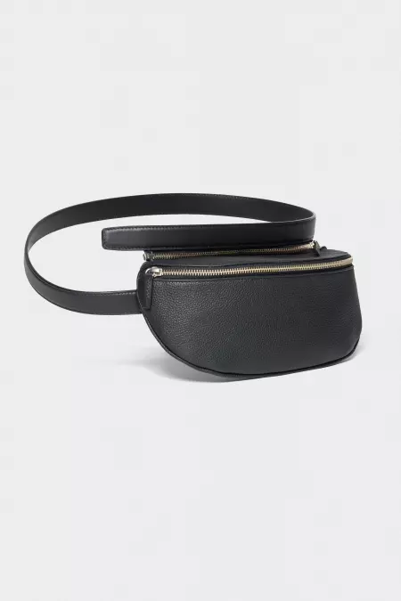 Leather pouch with a soft, large, zipped pocket attached to a belt that slides through a back coulisse. Can be worn crossbody or around the waist. Designed for practical use and versatile styling. Crafted from smooth, high-quality leather.