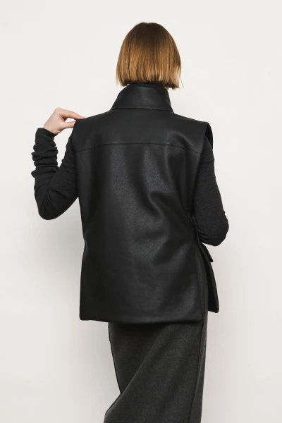 Shoulder vest with two large flap pockets and two spacious zipped pockets. Designed for practical everyday use, balancing functionality and minimalist design. Crafted from smooth leather with a clean silhouette.