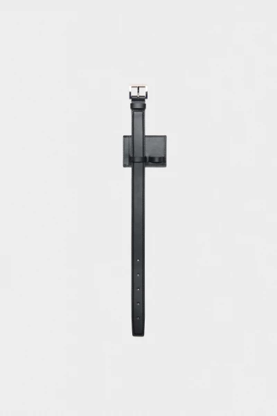 Card holder with two compartments, attached to a leather bracelet that wraps twice around the wrist or upper arm. Designed for convenience and ease of movement, offering a discreet way to carry essentials. Crafted from smooth leather with a minimal silhouette.